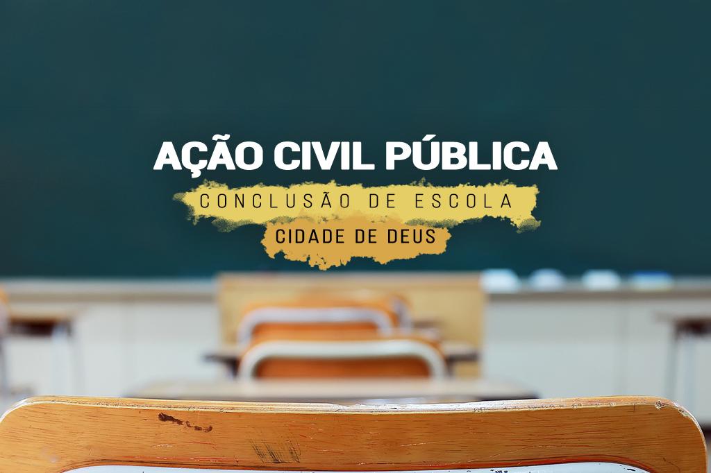 O Ministério Público do Estado do Rio de Janeiro (MPRJ), por meio da 2ª Promotoria de Justiça de Tutela Coletiva de Proteção à Educação da Capital, ajuizou ação civil pública em que demanda que o Estado do Rio de Janeiro seja obrigado pela Justiça a concluir as obras para instalação de uma escola de Ensino Médio na Cidade de Deus, na Zona Oeste do Rio.