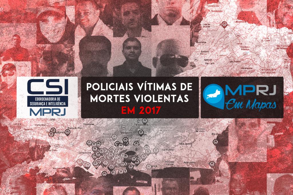O Ministério Público do Estado do Rio de Janeiro (MPRJ), por meio da Coordenadoria de Segurança e Inteligência (CSI/MPRJ), disponibilizou na plataforma “MP em Mapas”, em janeiro, relatório sobre policiais militares vítimas de morte violenta no ano de 2017, no Estado. O estudo foi elaborado a partir de cruzamento e análise de dados disponíveis na base do Portal da Segurança, nos registros de ocorrência da Polícia Civil, em matérias jornalísticas e nas bases de dados do MPRJ, da PMERJ e do Tribunal de Justiça.