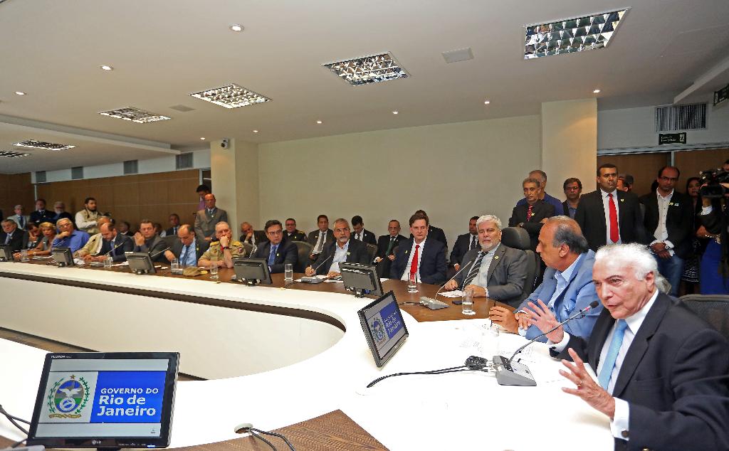 A primeira reunião de trabalho após a transferência das operações de segurança ao Governo Federal contou também com a presença do presidente da Câmara dos Deputados, Rodrigo Maia, ministro-chefe da Secretaria Geral da Presidência, Moreira Franco, do chefe de Gabinete de Segurança Institucional da Presidência da República, Sérgio Etchegoyen, dos ministros da Defesa, Raul Jungmann, da Justiça, Torquato Jardim, do Desenvolvimento Social, Osmar Terra, , do prefeito do Rio, Marcelo Crivella, do vice-presidente da Alerj, Wagner Montes, do presidente do Tribunal de Justiça do Rio de Janeiro, Milton Fernandes de Souza, do Defensor Público-Geral, André Castro, entre outras autoridades.