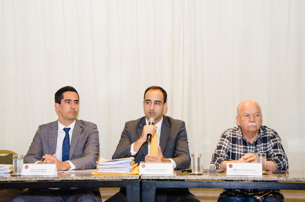 O Ministério Público do Estado do Rio de Janeiro (MPRJ) promoveu, na tarde da última quinta-feira (20/09), audiência pública para discutir o estado de operação do Sistema de Esgotamento Sanitário na Bacia de Jacarepaguá. O encontro lotou o auditório da Câmara Comunitária da Barra da Tijuca, e foi conduzido pelos promotores Murilo Bustamante, da 4ª Promotoria de Justiça de Tutela Coletiva de Defesa do Meio Ambiente e do Patrimônio Cultural da Capital, e José Alexandre Maximino Mota, do Grupo de Atuação Especializada em Meio Ambiente (GAEMA/MPRJ). A mesa da audiência, que contou com palestras de especialistas e dirigentes de empresas e órgãos públicos, contou ainda com a presença do presidente da Câmara Comunitária da Barra, Delair Drumbosck.