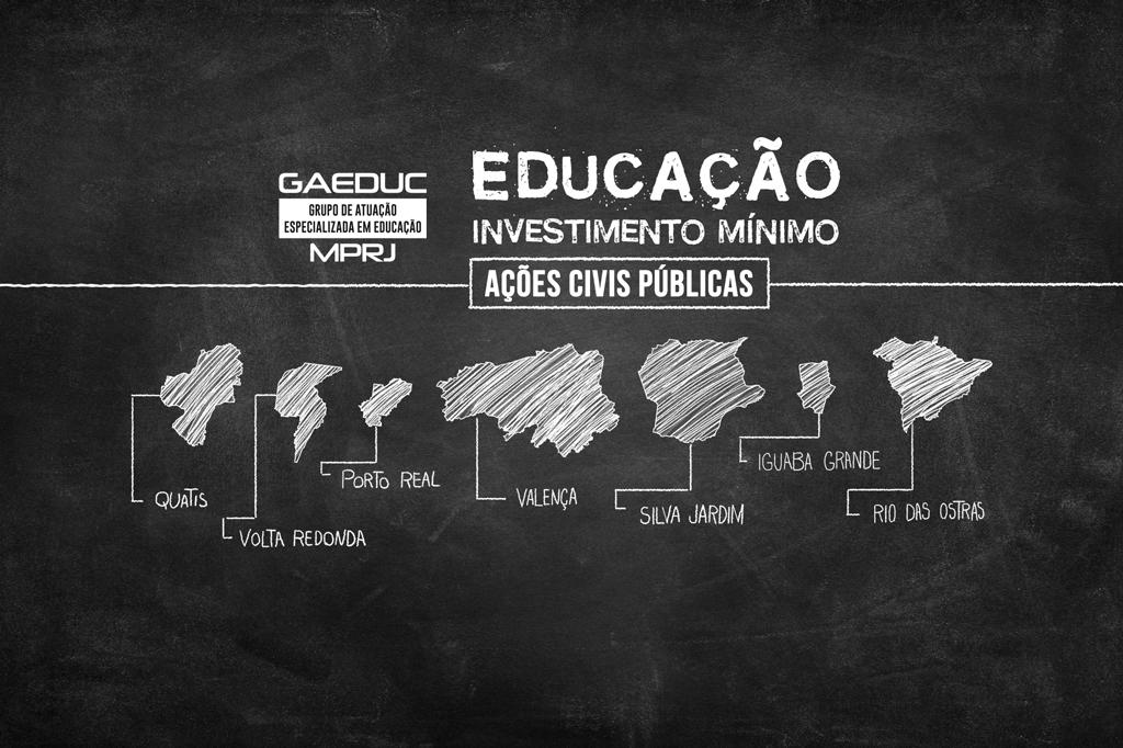 O Ministério Público do Estado do Rio de Janeiro (MPRJ), por meio do Grupo de Atuação Especializada em Educação (GAEDUC/MPRJ), ajuizou sete Ações Civis Públicas contra municípios do estado pelo não cumprimento da aplicação mínima de recursos na área educacional e do repasse de recursos exclusivamente para as secretarias de Educação. De acordo com as ações, entre os anos de 2016 e 2017, as prefeituras de Iguaba Grande, Porto Real, Volta Redonda, Valença e Rio das Ostras descumpriram o artigo 212, caput, da Constituição Federal e o artigo 69, caput, parágrafo 5º, da Lei de Diretrizes e Bases da Educação (LDB), que determinam, respectivamente, a aplicação de, no mínimo, 25% da receita resultante de impostos em Educação e o repasse dos valores imediatamente ao órgão responsável pela área. Os municípios de Silva Jardim e Quatis descumpriram apenas o artigo 69, caput, parágrafo 5º, da LDB. As ações foram distribuídas junto às Varas de Fazenda Pública dos municípios no último dia 26/09, sendo que a ACP relativa a Porto Real foi distribuída em 27/09.