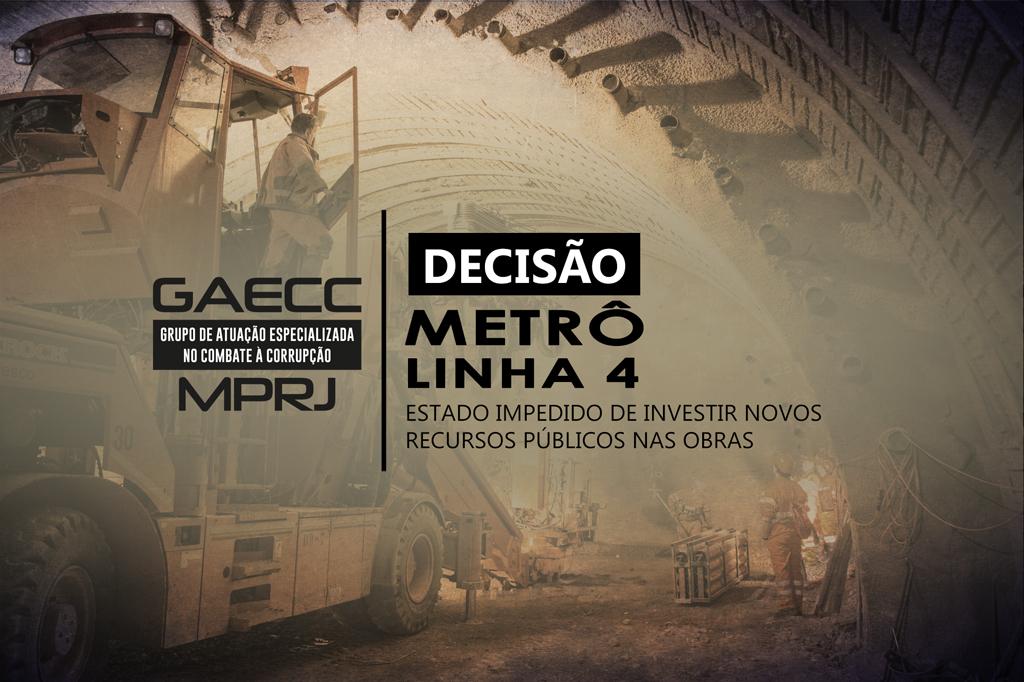 Diz o GAECC/MPRJ que a história da construção da Linha 4 contém séries de ilegalidades praticadas em prejuízo das finanças públicas e em benefício das empresas, que já são objeto de outra ação, também encabeçada pelo Grupo, que busca desde 2017 a devolução ao tesouro estadual de mais de R$ 3,17 bilhões relativos a superfaturamento e sobrepreço na execução da obra, na qual figuram como réus o ex-governador, Sérgio Cabral, três ex-secretários de Transportes, fiscais e empresas envolvidas com práticas criminosas apontadas em diversas ações penais conduzidas pela Força Tarefa da Lava Jato.