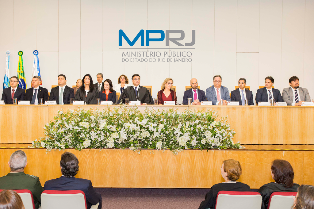 Compuseram a mesa principal do evento a desembargadora Maria Augusta Vaz, terceira-vice-presidente do Tribunal de Justiça; a corregedora-geral do MPRJ, Luciana Sapha; a presidente interina do Tribunal de Contas do Estado, Marianna Montebello; o procurador-geral do estado, Rodrigo Crelier Zambão da Silva; o presidente licenciado da Ordem dos Advogados do Brasil, seccional RJ, Felipe Santa Cruz; o superintendente da Polícia Federal no estado, Ricardo Saad; o conselheiro do Conselho Nacional do Ministério Público, Marcelo Weitzel Rabello de Souza; o conselheiro do Conselho Nacional de Justiça, Fernando César Baptista de Mattos; o procurador-geral do município do Rio, Antônio Carlos de Sá; o presidente da Associação do MPRJ, Luciano Oliveira Mattos de Souza; a presidente do Dentro de Procuradores de Justiça do Estado do Rio, Maria do Carmo Casa Nova; o presidente do Sicoob Coomperj, Luiz Antônio Ferreira de Araujo; e a presidente da Fundação Escola Superior do MPRJ, Lilian Moreira Pinho.
