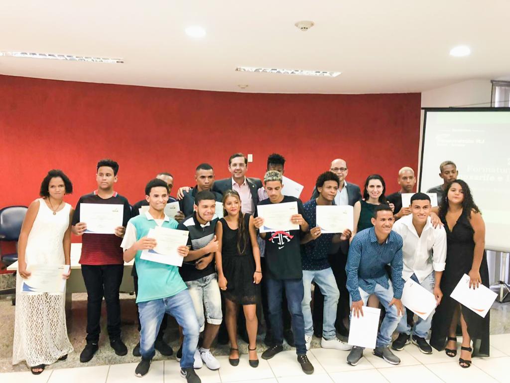 O Ministério Público do Estado do Rio de Janeiro (MPRJ), por meio da Promotoria de Justiça da Infância e da Juventude de Itaguaí, e o Ministério Público do Trabalho (MPT-RJ) realizaram, na última quarta-feira (09/01), na sede de Itaguaí do MPRJ, cerimônia para celebrar a formação de 19 adolescentes nos cursos de Almoxarife e Informática do Serviço Nacional de Aprendizagem Comercial (Senac). Os jovens são participantes do “Resgatando a Cidadania”, iniciativa proveniente de um acordo judicial firmado entre o MPRJ, o MPT-RJ, o Município de Itaguaí e a Companhia de Desenvolvimento Urbano de Itaguaí (Coduita).