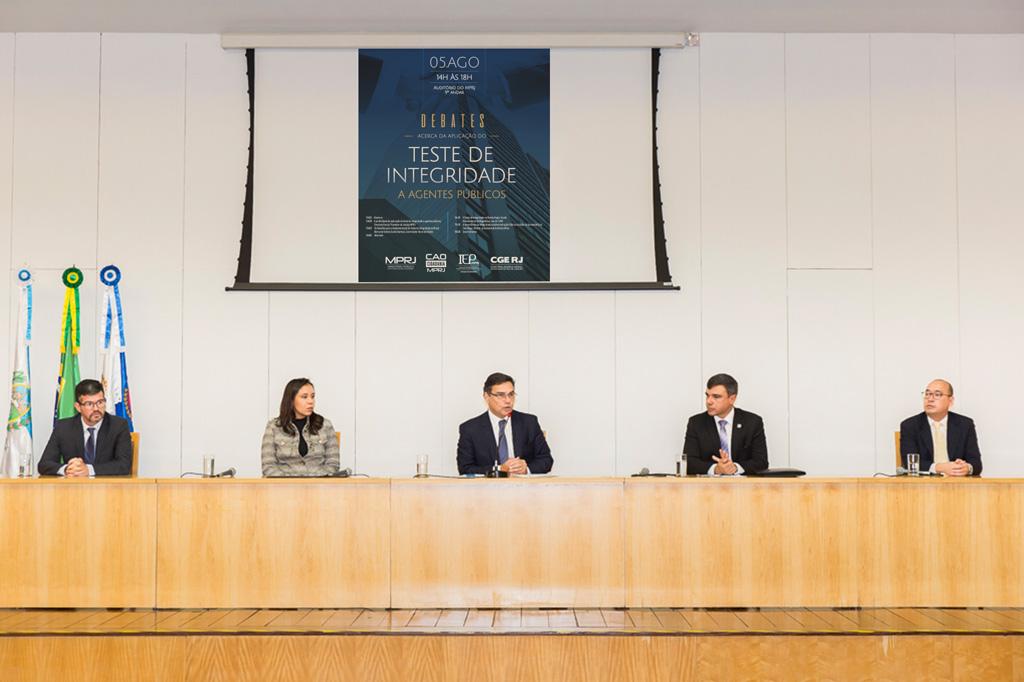 O Ministério Público do Estado do Rio de Janeiro (MPRJ), por meio do Instituto de Educação e Pesquisa (IEP/MPRJ) e do Centro de Apoio Operacional das Promotorias de Justiça de Tutela Coletiva de Defesa da Cidadania (CAO Cidadania/MPRJ), e em parceria com a Controladoria-Geral do Estado do Rio de Janeiro (CGE-RJ), realizou, na tarde de segunda (05/08), o evento “Debates acerca da aplicação do Teste de Integridade a agentes públicos”. O encontro, que ocorreu no auditório do edifício-sede do MPRJ, teve como intuito discutir a viabilidade, no Estado do Rio de Janeiro, da aplicação deste teste para a identificação e análise de práticas consideradas antiéticas, sob a ótica do Direito e da Administração Pública, como instrumento para prevenir e combater desvios de comportamento e a corrupção.