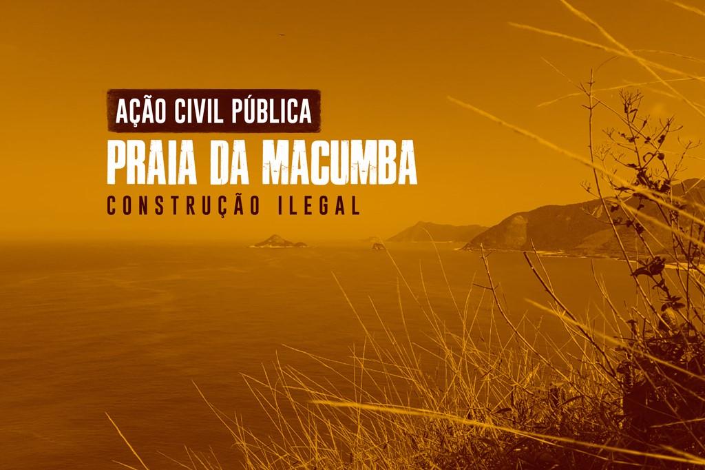 O Ministério Público do Estado do Rio de Janeiro (MPRJ), por meio da 1ª Promotoria de Justiça de Tutela Coletiva de Defesa da Ordem Urbanística da Capital, ajuizou ação civil pública para paralisar obras ilegais de construção de três edifícios de cinco andares próximo à Praia da Macumba, no Recreio dos Bandeirantes, Zona Oeste do Rio. O MPRJ obteve na Justiça decisão liminar determinando que o município do Rio lacre todos os acessos da obra e faça o cadastro e remoção de famílias ocupantes, sob pena de multa diária de R$ 10 mil.