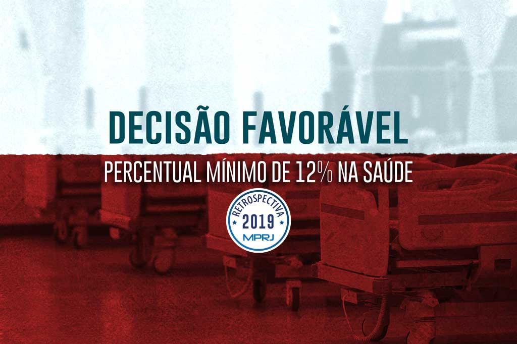 O Ministério Público do Estado do Rio de Janeiro (MPRJ), por meio da 3ª Promotoria de Justiça de Tutela Coletiva da Saúde da Capital, obteve decisão favorável, junto à 13ª Vara de Fazenda Pública que proíbe o Estado do Rio de efetivar novas contratações até que apresente planejamento para investir o percentual mínimo de 12% de suas receitas na área de saúde. A determinação judicial exclui as contratações efetuadas nas áreas da saúde (englobando saneamento), segurança, educação e as que permitirem o aumento da receita orçamentária.