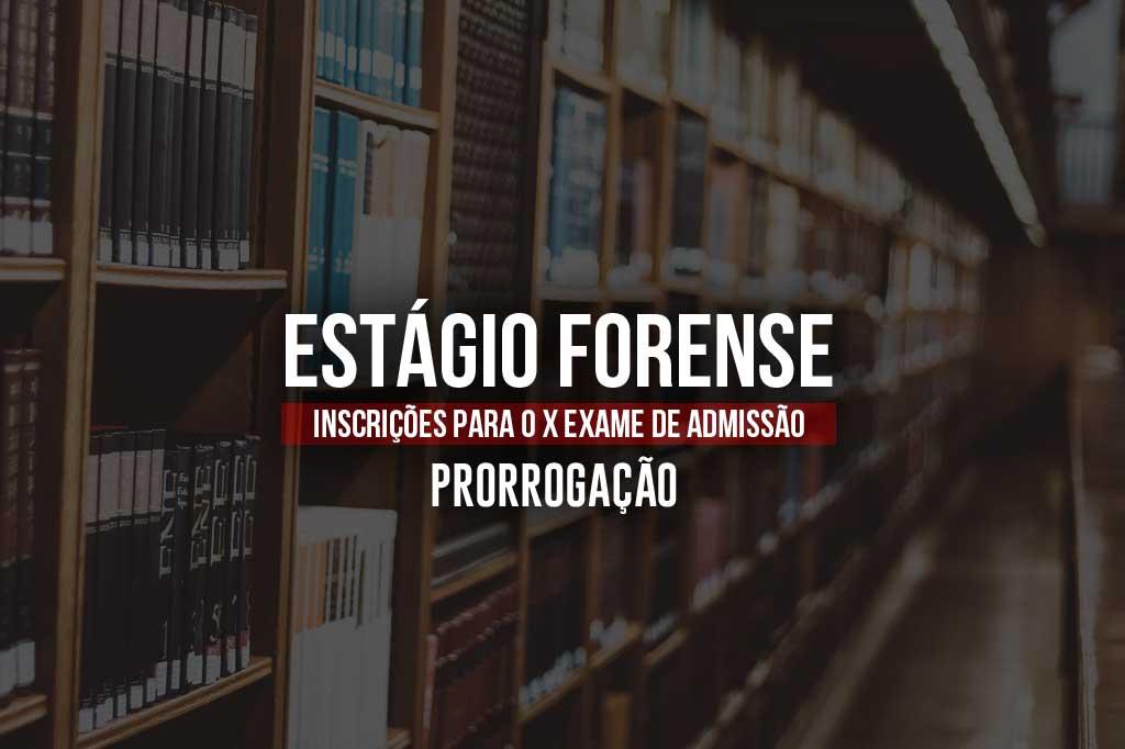O Ministério Público do Estado do Rio de Janeiro (MPRJ) informa que foram prorrogadas, até 19 de março, as inscrições para o X Exame de Admissão ao Estágio Forense. Destinado a estudantes de Direito matriculados em faculdades reconhecidas pelo governo federal, e conveniadas com o MPRJ, o concurso oferece 800 vagas distribuídas em 15 diferentes Centros Regionais de Apoio Administrativo e Institucional (CRAAIs). A inscrição pode ser feita pela internet, no site da FGV ou do próprio MPRJ.