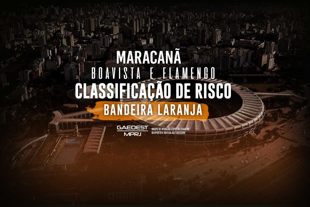 O Ministério Público do Estado do Rio de Janeiro (MPRJ), por meio do Grupo de Atuação Especializada do Desporto e Defesa do Torcedor (GAEDEST/MPRJ), a Federação de Futebol do Estado do Rio de Janeiro (FERJ) e os demais órgãos envolvidos no planejamento e realização de jogos no Maracanã (GT Maracanã) definiram como Bandeira Laranja a classificação de risco para o jogo entre Boavista e Flamengo, neste sábado (22/02), às 18:00h. A classificação foi definida após reunião entre os grupos envolvidos no planejamento e organização do jogo.