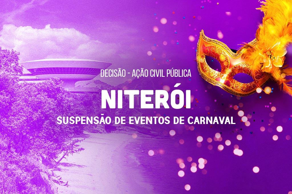 O Ministério Público do Estado do Rio de Janeiro (MPRJ), por meio da Promotoria de Justiça de Tutela Coletiva de Defesa da Cidadania - Núcleo Niterói, obteve nova decisão favorável, junto à 10ª Vara Cível de Niterói, à ação civil pública ajuizada para que o município de Niterói revogue todas as autorizações para a realização de eventos previstos para o Carnaval 2020 na cidade que não estejam legalizados e autorizados. Na decisão da última quinta-feira (20/02), a juíza titular Maria Aparecida da Costa Bastos determinou "a suspensão de todos os eventos de carnaval previstos no calendário da cidade até que o município comprove, documentalmente, a existência de todas as autorizações legais (PMERJ, PCERJ e CBMERJ) ou a dispensa delas".