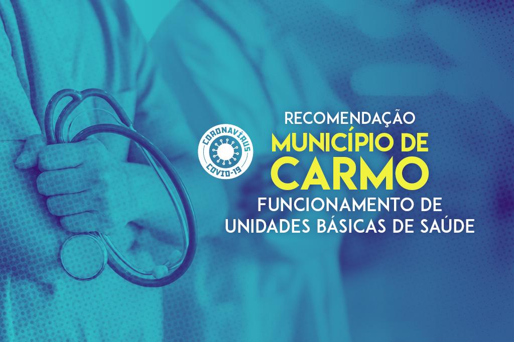 O Ministério Público do Estado do Rio de Janeiro (MPRJ), por meio da 2ª Promotoria de Justiça de Tutela Coletiva do Núcleo Três Rios, emitiu, nesta segunda-feira (23/03), recomendação ao prefeito e à secretária de Saúde de Carmo para que adotem medidas imediatas para restabelecer o regular funcionamento das unidades básicas de Saúde do município. De acordo com uma denúncia recebida pela Ouvidoria do MPRJ, em uma situação de pandemia do novo coronavírus (COVID-19), os médicos destes equipamentos públicos têm se recusado a comparecer ao serviço, o que prejudica completamente o trabalho das unidades básicas, responsáveis pela identificação precoce e encaminhamento dos casos mais graves de saúde às unidades de emergência.