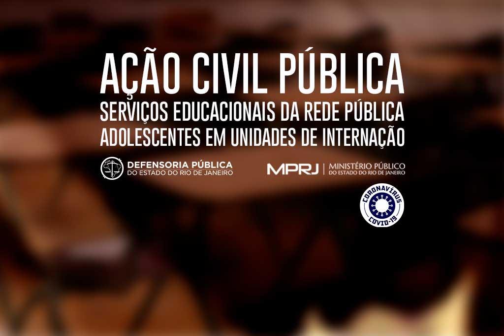 O Ministério Público do Estado do Rio de Janeiro (MPRJ), por meio da 3ª Promotoria de Justiça de Tutela Coletiva de Proteção à Educação da Capital, e a Defensoria Pública do Estado do Rio, por meio da Coordenação de Infância e Juventude e da Coordenadoria de Defesa dos Direitos da Criança e do Adolescente, ajuizaram ação civil pública para que o Estado do Rio garanta a adolescentes e jovens em unidades de internação do sistema socioeducativo, no prazo máximo de 72 horas, a oferta dos mesmos serviços educacionais oferecidos aos alunos da rede estadual de ensino, durante a pandemia do novo coronavírus (COVID-19). De acordo com o documento, com o advento da pandemia, a Secretaria de Estado de Educação suspendeu os serviços educacionais prestados nas unidades de internação.