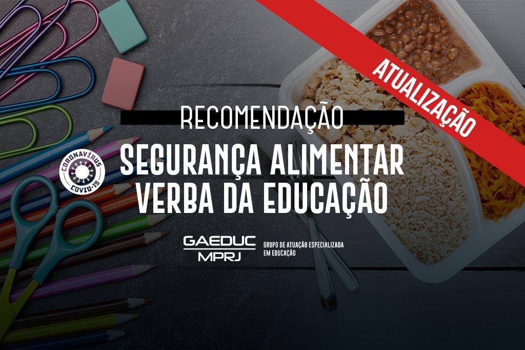 Entre as medidas que constam da Recomendação estão a garantia da segurança alimentar de todos os alunos matriculados na rede municipal de ensino de Duque de Caxias, mediante a adoção de ações administrativas relativas à oferta e distribuição de alimentação necessária e suficiente para garantia da sua necessidade nutricional, respeitada a proporcionalidade da carga horária letiva de cada um dos alunos (período parcial ou integral), em qualquer modalidade, e de forma impessoal, respeitadas as normas legais e constitucionais de vinculação de recursos; e a garantia legal do adequado financiamento da política pública de alimentação no município durante o período de suspensão das aulas em razão de calamidade pública e medidas de isolamento social determinadas pela COVID-19, utilizando-se para tanto de fontes de recursos próprios não vinculados à educação (à exceção dos recursos do art. 5º da Lei 11.947/2009, nas hipóteses legais).