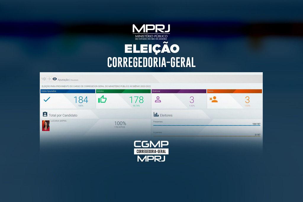 O Ministério Público do Estado do Rio de Janeiro (MPRJ), por meio do Colégio de Procuradores de Justiça, elegeu nesta segunda-feira (08/06) a procuradora de Justiça Luciana Sapha Silveira para exercer seu segundo mandato como corregedora-geral da instituição. Candidata única do pleito, Luciana Sapha Silveira, que tomará posse perante o Órgão Especial do Colégio de Procuradores de Justiça no próximo dia 22/06, obteve 178 de um total de 187 votos possíveis, com três membros votando em branco e outros três anulando seu voto. A posse será realizada em sessão solene, com transmissão ao vivo na página do MPRJ na internet.
