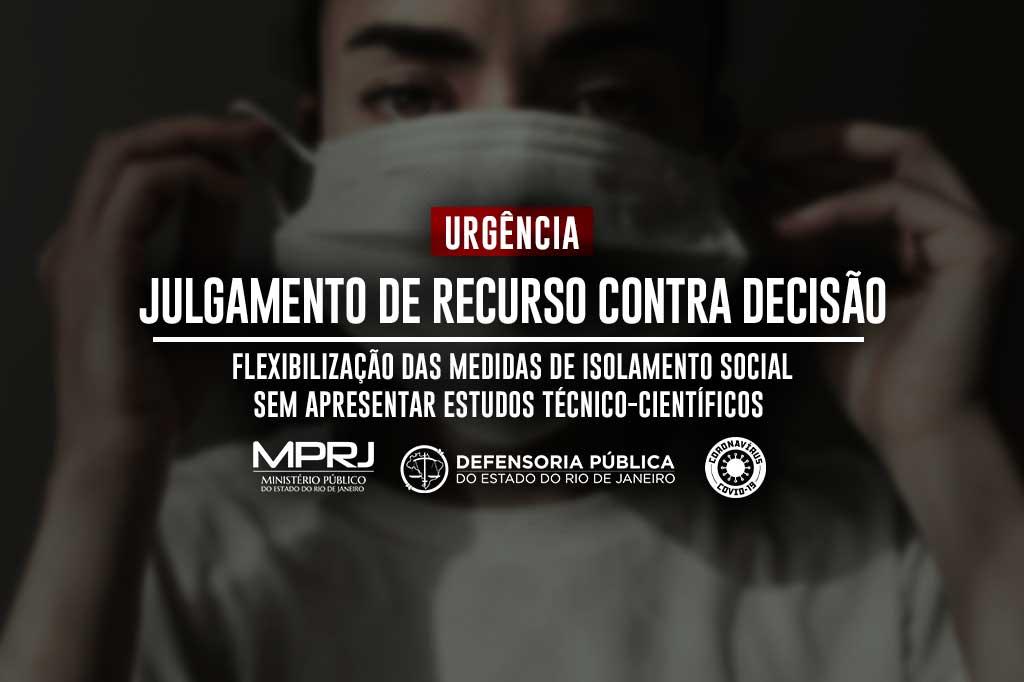 MPRJ e Defensoria manifestam urgência no julgamento de recurso contra decisão que permitiu ao Estado flexibilizar isolamento social sem apresentar estudos técnico-científicos