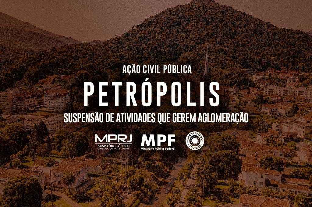 O MPRJ e o MPF, vêm trabalhando juntos na cidade de Petrópolis, desde o início da pandemia, para que o Poder Público defina estratégias e objetivos claros de combate ao coronavírus. Entre outros pedidos na ação estão: a apresentação pelo Município, no prazo de 10 dias, da estratégia de testagem na Atenção Primária à Saúde, abrangendo busca ativa de casos suspeitos e contactantes, com utilização de testes moleculares e sorológicos (testes RT-PCR e testes sorológicos rápidos), devendo abarcar todo o território municipal e, no mínimo, 15 mil pessoas; e que o Município apresente, no mesmo prazo, projeto de Inquérito de Soroprevalência e Incidência de Covid-19, adotando o percentual mínimo de amostragem de 10% da população e abrangendo todo o território; além do fornecimento pela União dos testes RT-PCR em até 15 dias e em quantitativo suficiente para o início da estratégia de testagem junto à Atenção Primária à Saúde, ora avaliado em 15 mil testes. Também foi requerida pena de multa diária de R$ 50 mil para cada item descumprido.