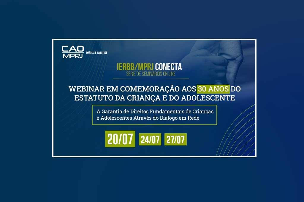 O Ministério Público do Estado do Rio de Janeiro (MPRJ) promoveu, na tarde de segunda-feira (20/07), na plataforma Teams e no Youtube, o primeiro dos três encontros do Webinar em Comemoração aos 30 Anos do Estatuto da Criança e do Adolescente (ECA). Com a proposta de debater 'A Garantia de Direitos Fundamentais de Crianças e Adolescentes Através do Diálogo em Rede', o evento é realizado pelo Centro de Apoio Operacional das Promotorias de Justiça da Infância e Juventude (CAO Infância e Juventude/MPRJ) e Instituto de Educação Roberto Bernardes Barroso (IERBB/MPRJ), em parceria com a Escola Nacional do Ministério Público (ENAMP). Os próximos debates acontecerão nos dias 24 e 27 deste mês, sempre a partir das 14h30, e com o mesmo sistema de transmissão online. A íntegra do primeiro encontro pode ser assistida AQUI.