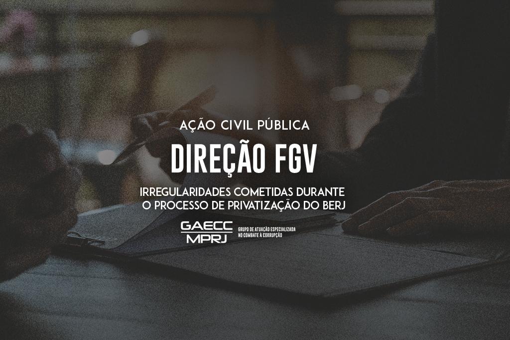 Especificamente em relação ao contrato para a precificação das ações do antigo BERJ, a ACP relata que o presidente da FGV, o vice-presidente Sérgio Franklin Quintella e os diretores da FGV Projetos, César Cunha Campos, Ricardo Pereira Simonsen, Sidnei Gonzalez dos Santos e Ocário Silva Defaveri, atuaram em abuso da personalidade jurídica da fundação e se valeram do regime legal aplicado à entidade para a obtenção de vantagens indevidas. De acordo com a ação, a direção da FGV subcontratou o banco Prosper e destinou-lhe valores superfaturados, sem correspondência com a natureza dos serviços obtidos em troca, dando vazão ao pagamento de valores ilícitos, por parte do banco, a integrantes do Poder Executivo estadual, à época comandado por Sérgio Cabral Filho.