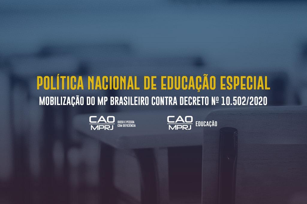 O Ministério Público do Estado do Rio de Janeiro (MPRJ), por meio dos Centros de Apoio Operacional das Promotorias de Justiça de Proteção à Educação (CAO Educação/MPRJ) e de Proteção ao Idoso e à Pessoa com Deficiência (CAO Idoso Pdef/MPRJ), participa da mobilização nacional dos MPs de enfrentamento ao Decreto nº 10.502/2020, de 30.09, que instituiu a Política Nacional de Educação Especial: Equitativa, Inclusiva e com Aprendizado ao Longo da Vida.