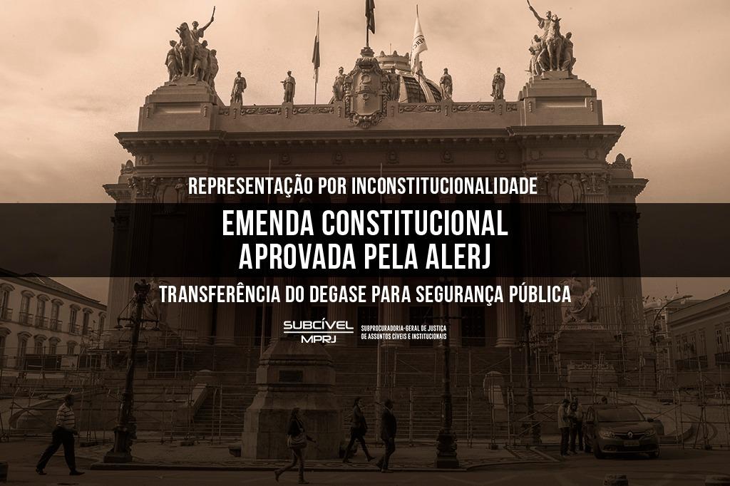 O Ministério Público do Estado do Rio de Janeiro (MPRJ), por meio da Subprocuradoria-Geral de Justiça de Assuntos Cíveis e Institucionais, ajuizou nesta quinta-feira (15/10), uma representação por inconstitucionalidade da Emenda Constitucional n.º 76/2020, aprovada pela Assembleia Legislativa do Rio (Alerj), e que transferiu o Departamento-Geral de Ações Socioeducativas (Degase) da área educacional para a da segurança pública, alterando o artigo 183 da Constituição Estadual.