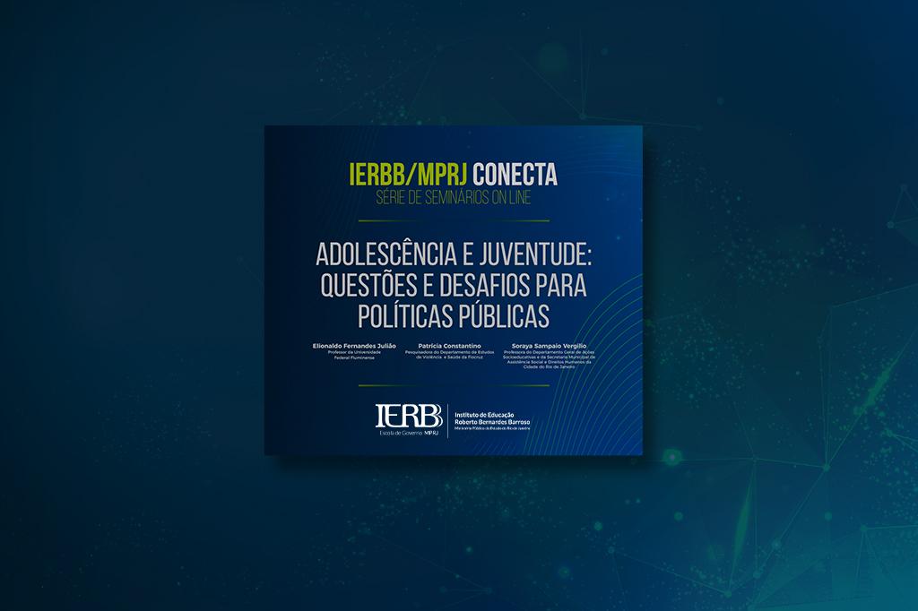 O Ministério Público do Estado do Rio de Janeiro (MPRJ), por meio do Instituto de Educação Roberto Bernardes Barroso (IERBB/MPRJ), realizou, na segunda-feira (07/12), edição do IERBB CONECTA com o tema “Adolescência e Juventude: Questões e Desafios para Políticas Públicas”, transmitido pelo Youtube. A abertura do evento contou com a presença do Vice-Diretor do Instituto, promotor de Justiça Leandro navega, da coordenadora do CAO Infância e Juventude, promotora de Justiça Luciana Rocha de Araujo Benisti e da Coordenadora do CENPE, Joana Martins Monteiro.