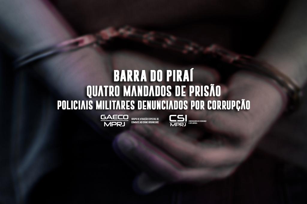 O MPRJ, por meio do Grupo de Atuação Especial no Combate ao Crime Organizado (GAECO/MPRJ) e da Coordenadoria de Segurança e Inteligência (CSI/MPRJ), com apoio da Policia Militar do Estado do Rio, por meio da Corregedoria Geral da Polícia Militar, realiza operação nesta sexta-feira (18/12) para cumprir quatro mandados de busca e apreensão contra policiais militares denunciados por corrupção. Os policiais e outros três civis foram denunciados a partir de provas obtidas na operação 'Desvio de Rota", deflagrada na terça-feira (15/12) contra organização criminosa especializada na comercialização e transporte irregular de combustível.